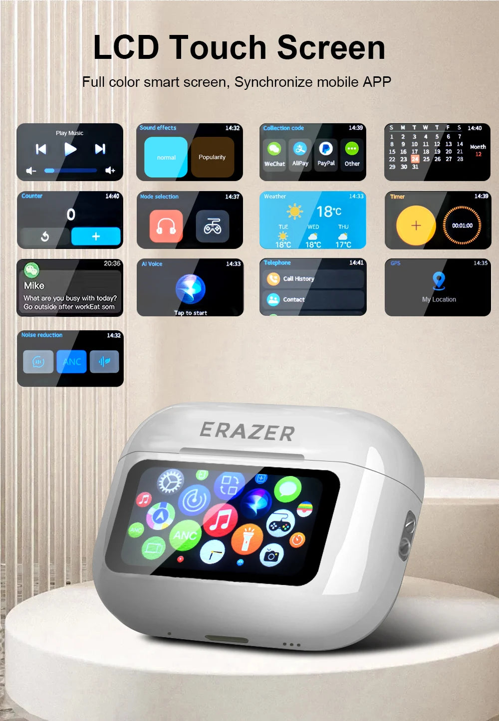 • Touchscreen Charging Case (Optional): Choose between touchscreen case for easy battery monitoring or no-touch case for a classic design.