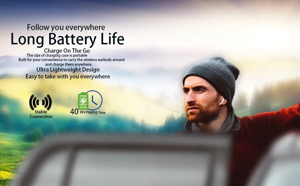 Long Battery Life: Up to 5 hours per charge (50% volume) with an additional 20 hours from the charging case; total playback up to 40 hours. Quick charge: 10 minutes provides 2 hours of playback.